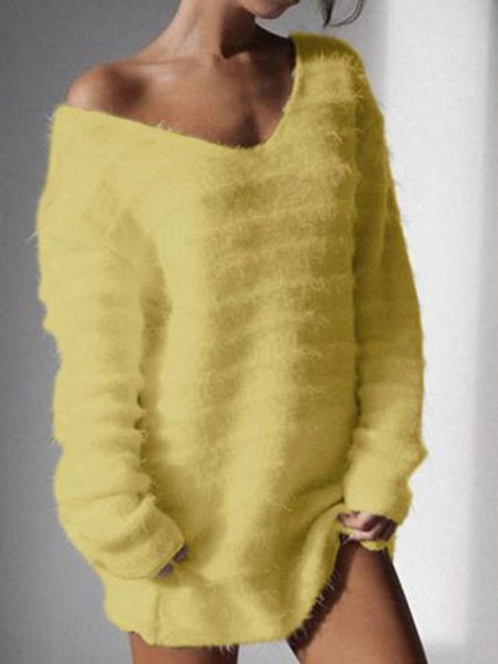 Long Sleeve Solid Cashmere Sweet Fleece Fuzzy Sweaters