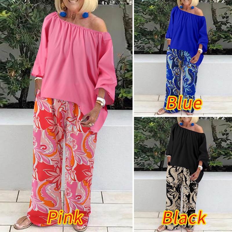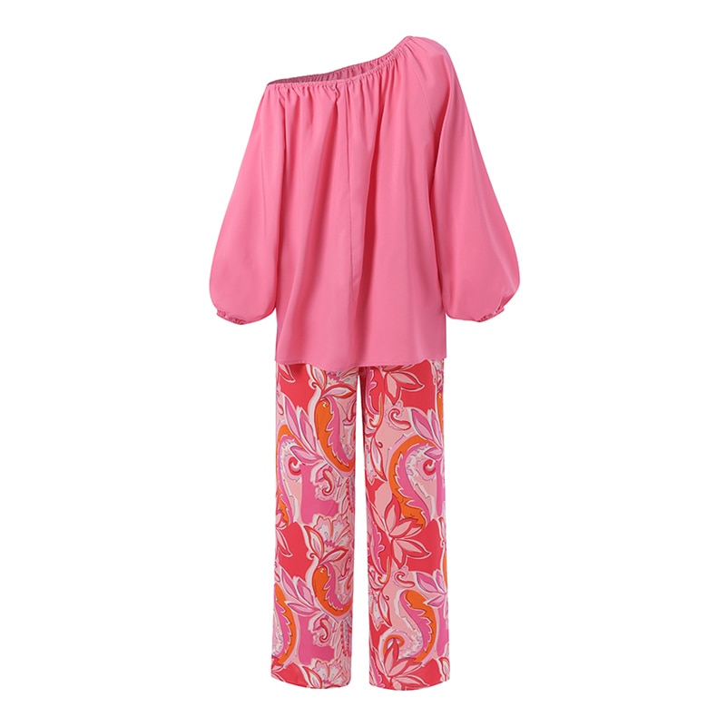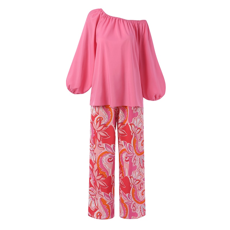 One-Shoulder Three-Quarter Sleeve Top and Wide-Leg Pants Suit